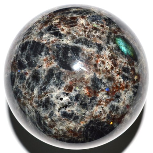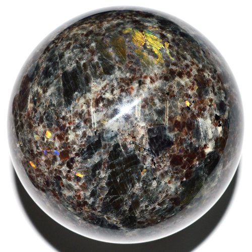 This is the labradorite sphere with iridescence in blue and yellow colors. Diameter: 2.6″ (66mm). Weight – 14.1oz (399 grams). Origin: Russia, Transbaikalia.