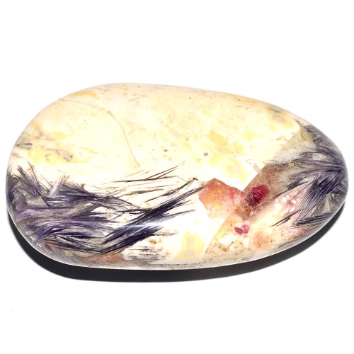 This is the polished purple lepidolite pebble with pink tourmaline, feldspar and quartz. Dimensions: 3.5 x 2.2 x 1.1″ (9 x 5.5 x 2.8cm). Weight – 6.6oz (188 grams). Origin: Russia, Transbaikalia.