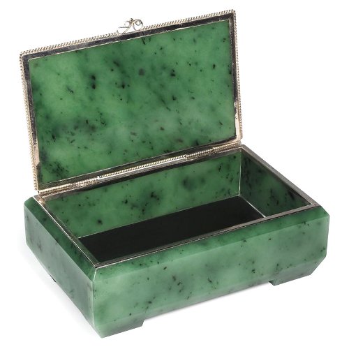 This is the green nephrite jewelry box. Dimensions: 4.6 x 2.9 x 1.7″ (11.7 x 7.4 x 4.4cm). Weight – 14.8oz (420 grams). Origin: Russia, Buryatia.