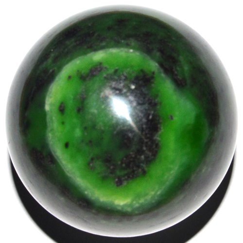 This is the polished green nephrite sphere. Diameter: 2.1″ (53mm). Weight – 8.5oz (242 grams). Origin: Russia, Buryatia.