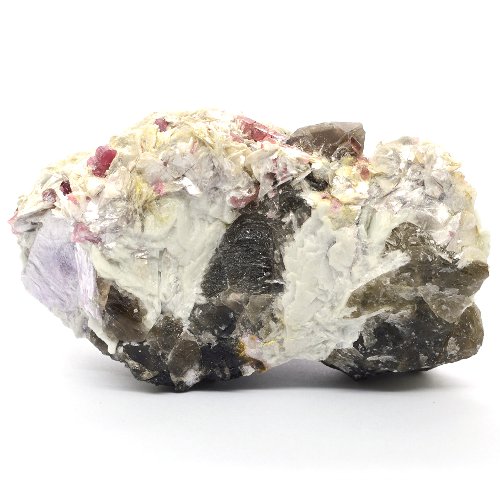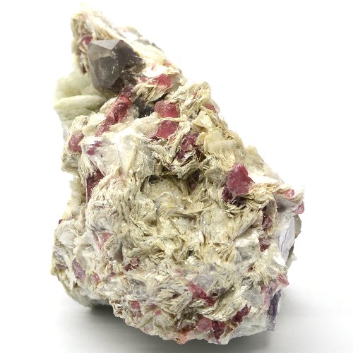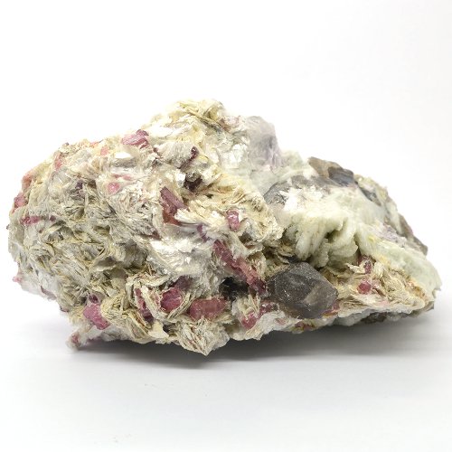 This is the translucent pink tourmaline crystals with lepidolite, cleavelandite and quartz. Dimensions: 4.4 x 2.4 x 2.3″ (11.1 x 6.1 x 5.9cm). Weight – 14.2oz (402 grams). Origin: Russia, Transbaikalia.