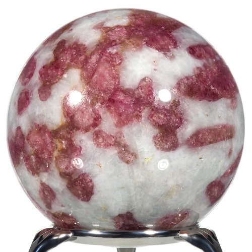 This is the polished pink tourmaline sphere (rubellite) with quartz. Diameter: 2.5″ (63mm). Weight – 12.9oz (365 grams). Origin: Russia, Transbaikalia.